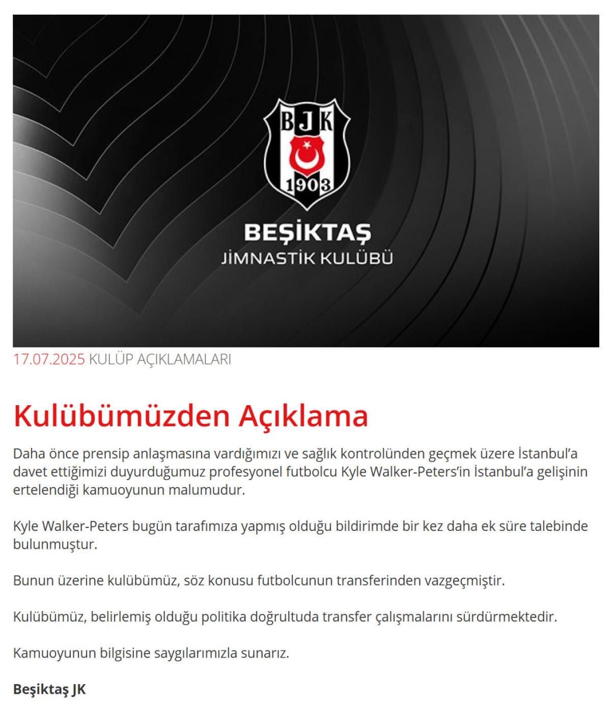 Yaşanan bu gelişmenin ardından ise Beşiktaş'tan bir açıklama daha yapıldı.