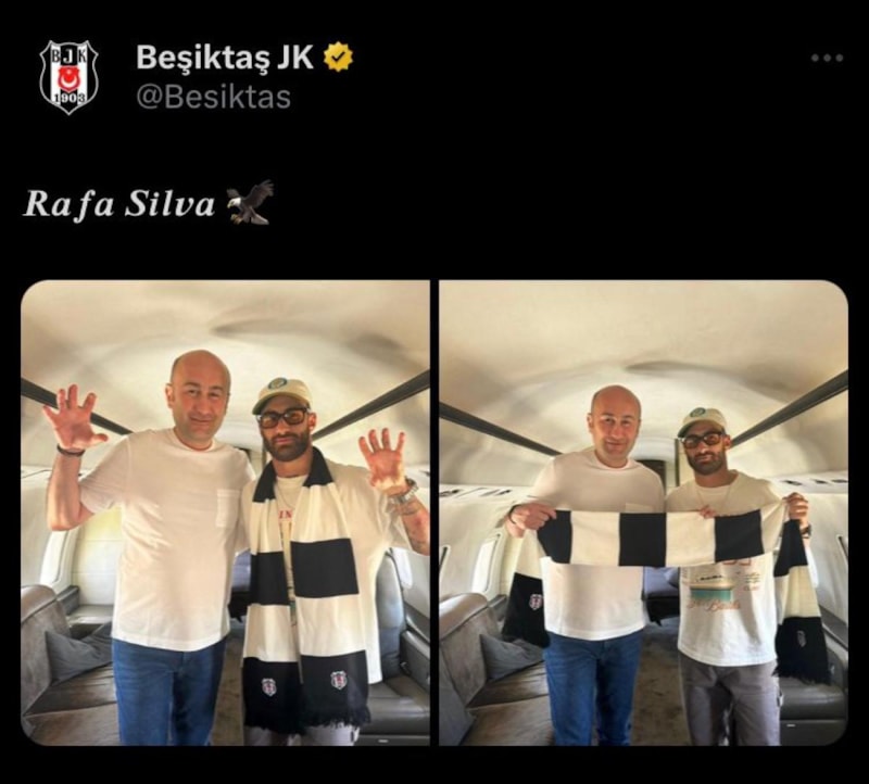 Siyah-beyazlılar, Rafa Silva için sosyal medya hesabından Kartal ve Uçak emojileri paylaştı.