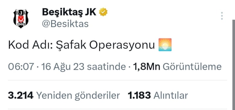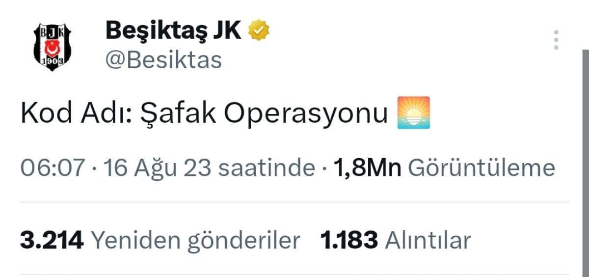 06.07'de Beşiktaş'ın sosyal medya hesabından yapılan "Kod Adı: Şafak Operasyonu" paylaşımı yapıldı.
