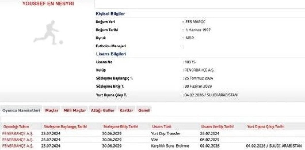 - Fenerbahçe, Youssef En-Nesyri'nin sözleşmesini feshederek TFF'ye bildirdi.