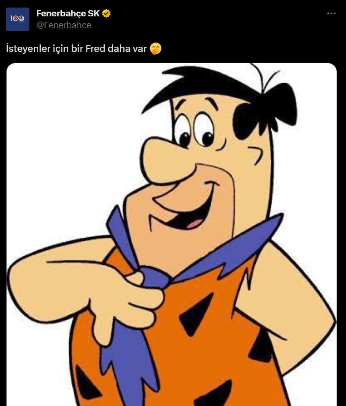 Yaz transfer döneminde Galatasaray'ın da ilgilendiği Fred'in Fenerbahçe'ye gitmesi sonrasında sarı-lacivertliler, ünlü çizgi film karakteri Fred Çakmaktaş'ın fotoğrafını paylaştı ve "İsteyenler için bir Fred daha var" şeklinde bir paylaşımda bulundu.