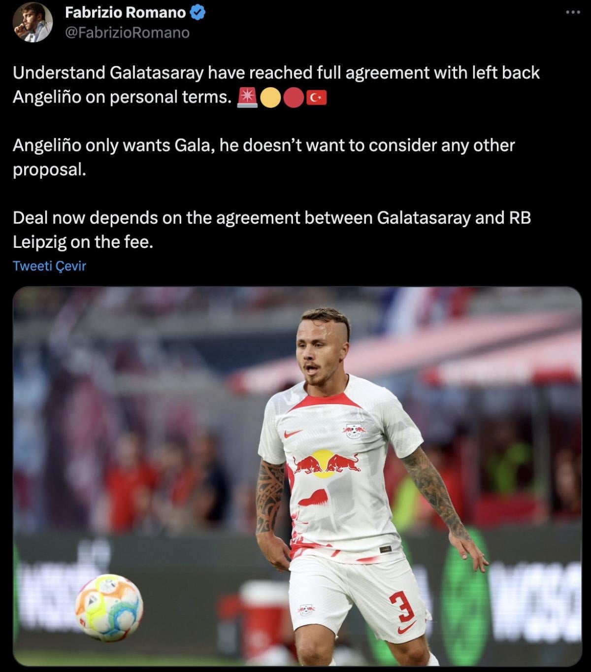 Transfer haberlerinin güvenilir kaynağı Fabrizio Romano'nun aktardığı bilgiye göre Galatasaray, Angelino ile anlaşmaya vardı.