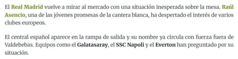 İspanyol basını Galatasaray'ın Real Madrid'in genç stoperi Raul Asencio ile yakından ilgilendiğini duyurdu.