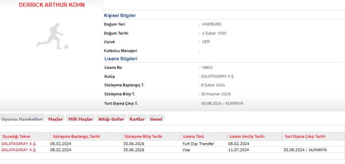 Sarı-kırmızılı takım, Derrick Köhn'ün Almanya'ya transfer olduğunu TFF'ye resmen bildirdi.