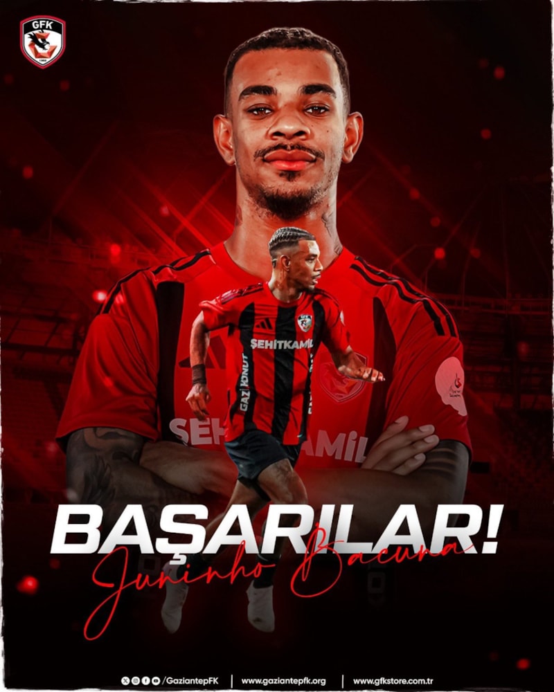 Süper Lig ekiplerinden Gaziantep FK, orta saha oyuncusu Juninho Bacuna'nın, sezon sonuna kadar Hollanda Eredivisie takımlarından FC Volendam'a kiralandığını bildirdi.
