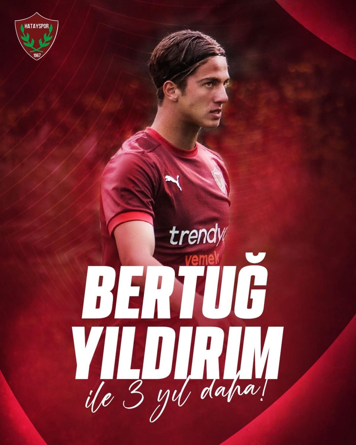 Süper Lig ekibi Hatayspor, 21 yaşındaki santrafor oyuncusu Bertuğ Yıldırım’ın sözleşmesinin 3 yıllığına uzatıldığı bildirdi.