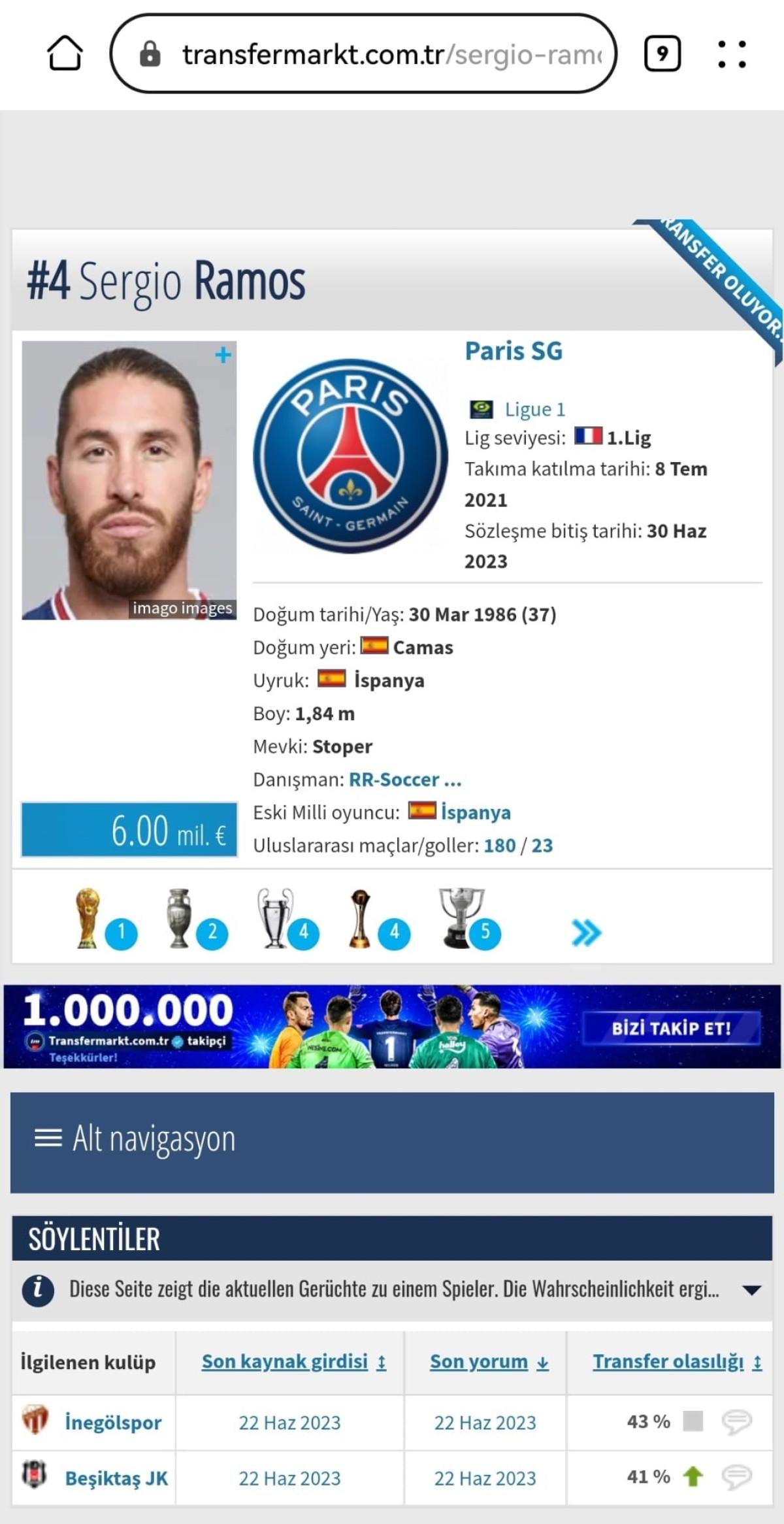 PSG ile sözleşmesinin sonuna gelen 37 yaşındaki Sergio Ramos serbest kaldı.