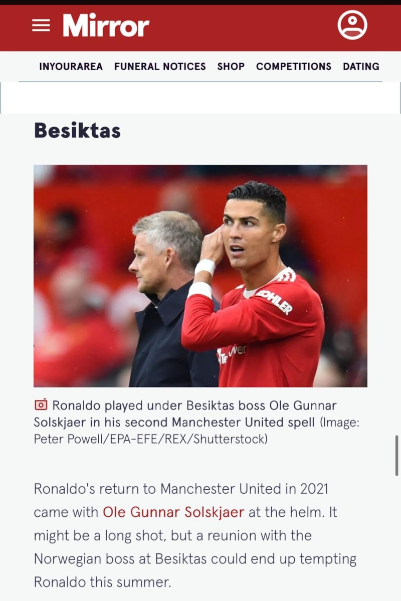 Ronaldo'nun 2021'de Manchester United'a dönüşü Ole Gunnar Solskjaer'in dümeninde gerçekleşti. Norveçli teknik direktörle Beşiktaş'ta yeniden bir araya gelmek bu yaz Ronaldo'yu cezbedebilir. Ronaldo, Erik ten Hag yönetiminde düzenli süre almakta zorlanırken, Solskjaer ve Ralf Rangnick yönetimindeki ilk sezonunda United'ın en golcü oyuncusuydu. Beşiktaş'ın bu sezonki en golcü oyuncusu Ciro Immobile'nin sözleşmesinde yalnızca bir yılı daha kaldı ve sezonun başlarında sakatlık sorunu nedeniyle bazı maçları kaçırdı, bu yüzden Süper Lig kulübü Ronaldo için bütçesi olup olmadığını görmek isteyebilir. Elbette, İstanbul takımının bu dönemde ilk ikide yer alamaması gibi küçük bir sorun var. Ronaldo, Şampiyonlar Ligi futbolu vaadi olmadan Avrupa'ya geri döner miydi?