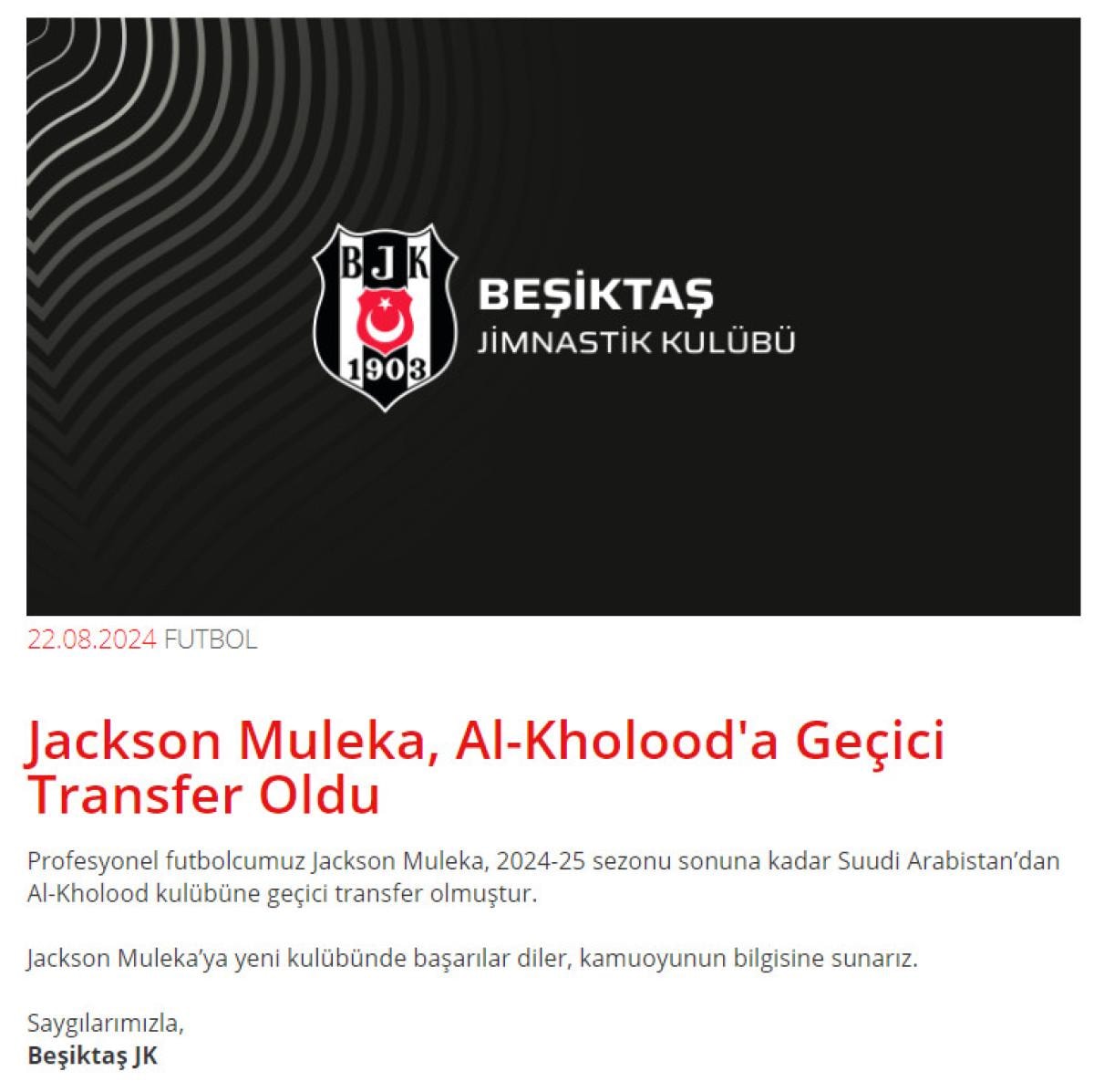 Hollandalı teknik adam Giovanni van Bronckhorst yönetiminde sezona iyi bir başlangıç yapan siyah-beyazlı takımda, uzun süredir ayrılığı gündemde olan Jackson Muleka ile vedalaşıldı.