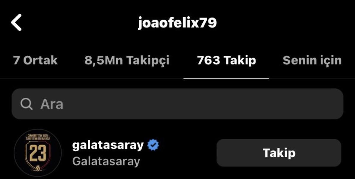 23 yaşındaki yıldız futbolcu, Instagram hesabından Galatasaray'ı takibe aldı. Felix'in bu hamlesi, Galatasaray taraftarlarını oldukça heyecanlandırdı.