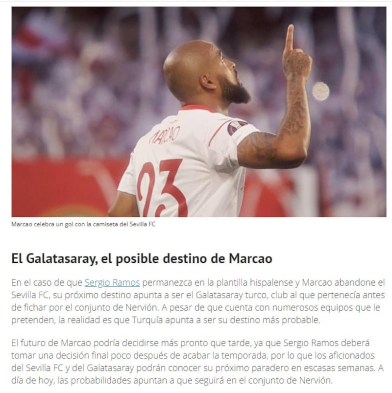 İspanyol basınında habere göre; Marcao ile Sevilla yaz transfer döneminde yollarını ayıracak.