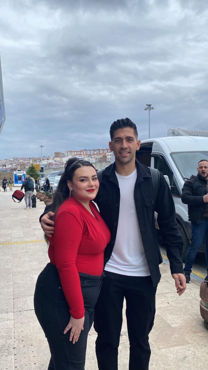 Havalimanının iç hat terminalinde bordo-mavili taraftarlar tarafından tezahüratlarla uğurlanan 30 yaşındaki futbolcu, futbolseverlerle fotoğraf da çektirdi.