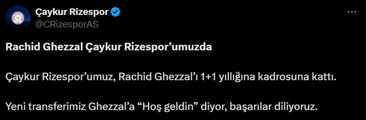 Yeni transferimiz Ghezzal’a “Hoş geldin” diyor, başarılar diliyoruz.