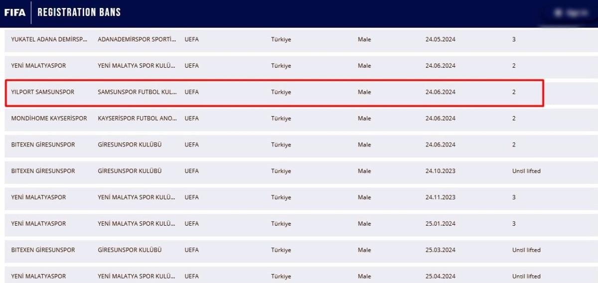 FIFA'nın daha önceden de açıkladığı listede transfer yasağı bulunan kulüpler arasında Ankaragücü, Şanlıurfaspor, Ümraniyespor, Menemen FK, Konyaspor, Elazığspor, Adanaspor, Hatayspor, Antalyaspor, Erzurumspor, Sakaryaspor, Fatih Karagümrük, Eyüpspor ve Adana Demirspor gibi kulüpler yer almıştı.