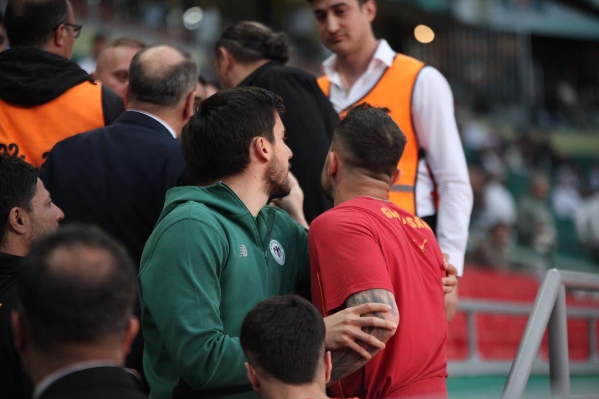 Mücadele öncesi zemini incelemek için sahaya çıkan Galatasaraylı Abdülkerim Bardakcı, Konyasporlu taraftarların tepkisi ile karşılaştı.