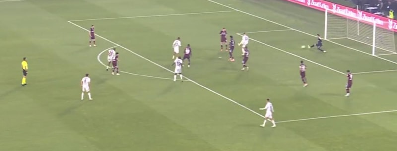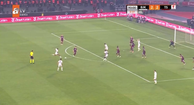 Karşılaşmanın son anlarında Nicolas Pepe'nin uzaklaştırmak istediği topu önünde bulan Libyalı isim, ceza sahası yayının birkaç adım gerisinden sağ çaprazdan sağ ayağıyla gelişine çok sert vurdu, yerden giden top kaleci Uğurcan Çakır'ın sağından ağlarla buluştu.