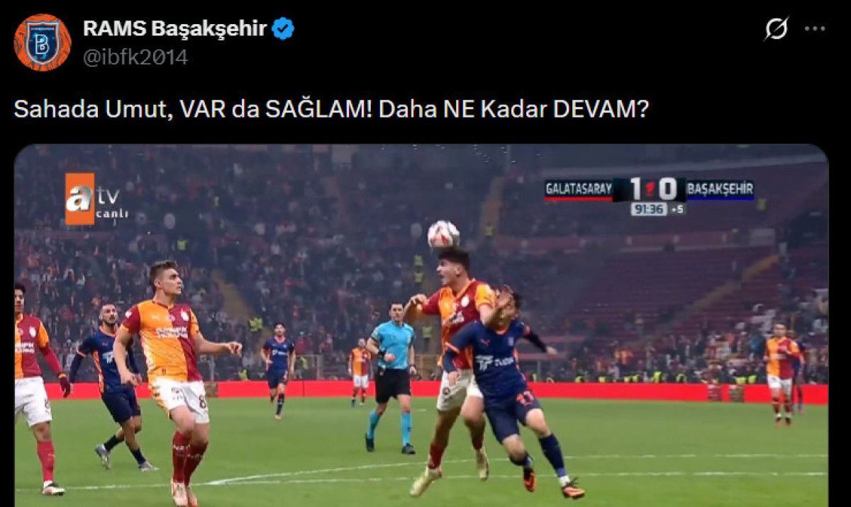 İstanbul temsilcisi, "Sahada Umut, VAR da SAĞLAM! Daha NE Kadar DEVAM?" ifadelerinin yer aldığı bir paylaşım yaptı.