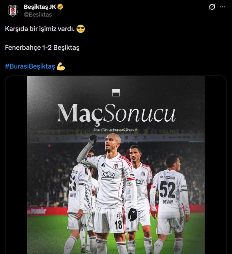 Bu paylaşımın kısa süre sonrasında ise siyah-beyazlı kulüp, "Karşıda bir işimiz vardı." mesajını yayınladı.