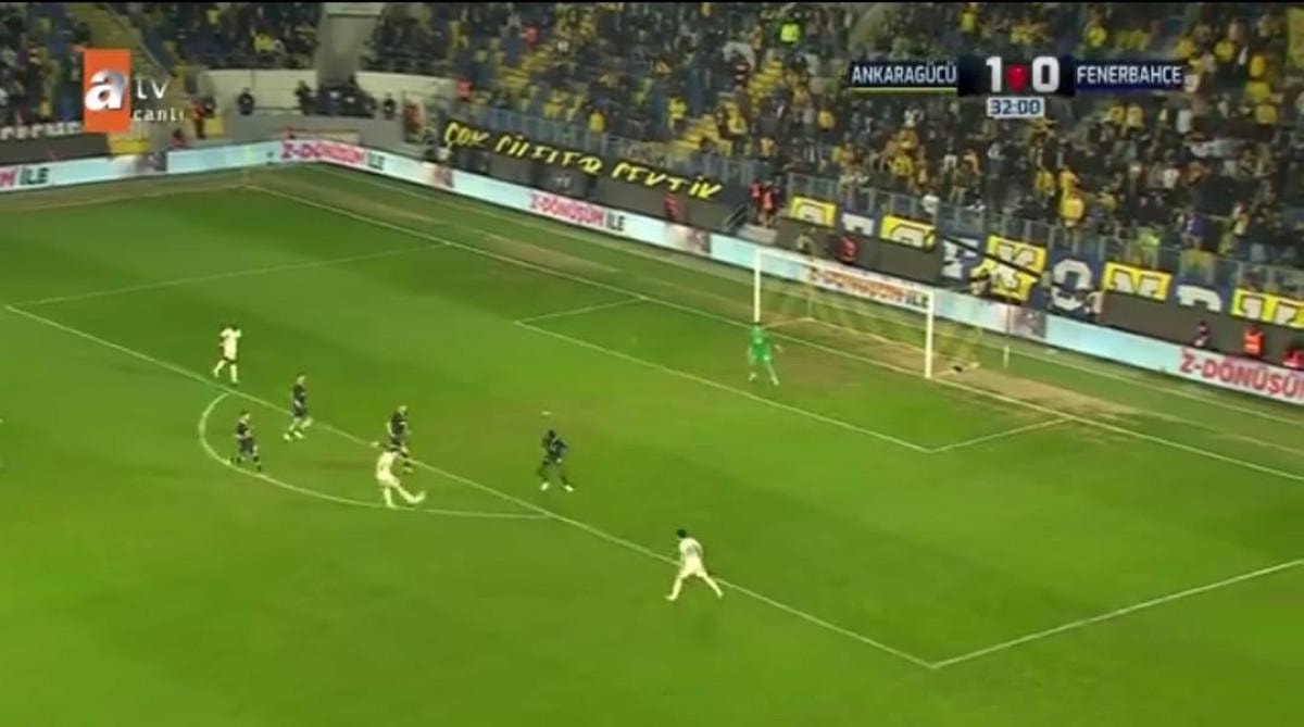 Dakikalar 33'ü gösterdiğinde Fenerbahçe atağında sağ kanattan son çizgiye inen Mert Müldür orta açmak istedi, Ankaragücü savunması topa müdahalede bulundu.