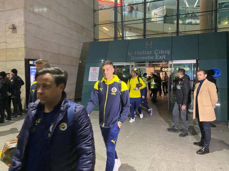 Fenerbahçe taraftarları takımlarını karşılamak için Ankara Esenboğa Havalimanı’na akın etti.