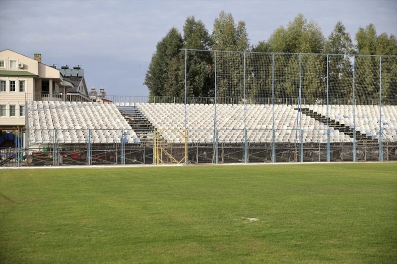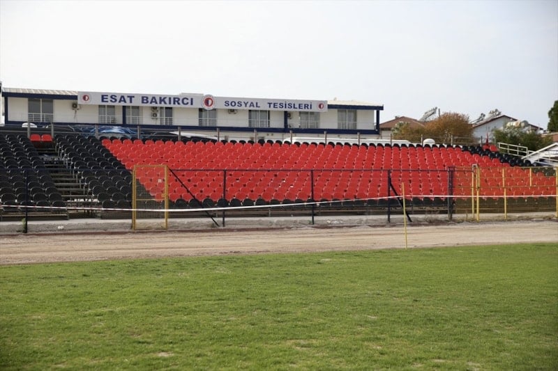 İlçe stadındaki deprem analiz raporunun olumsuz gelmesi nedeniyle yıkılan 3 bin kişilik tribünün yerine aynı kapasitede portatif tribün kuruldu.