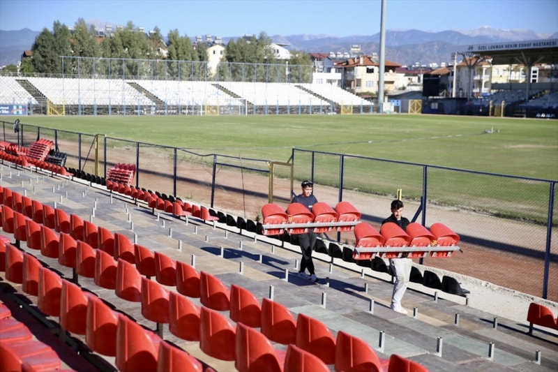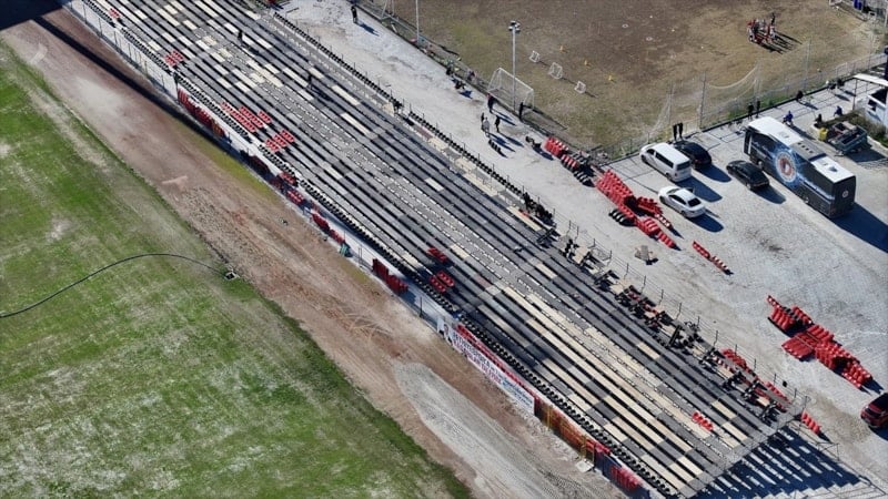 Deprem analiz raporları olumsuz çıkan stadın betonarme tribününün yıkıldığını kaydeden Yiğit, "Onun yerine portatif bir tribün ekleme yapmamız gerekti. 3 bin kişilik tribün imalatı devam ediyor. Pazartesi, salı gibi de tribün işi bitmiş olacak." bilgisini verdi.