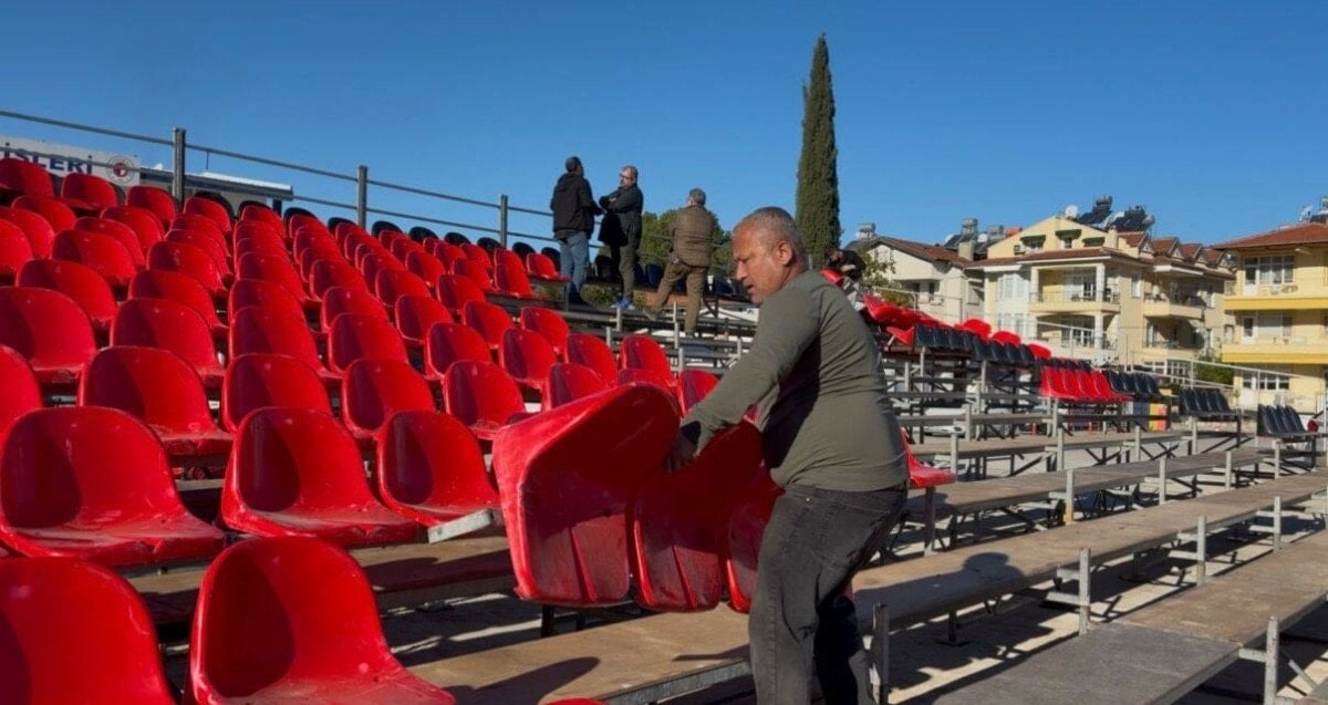 - Fethiyespor, Galatasaray'la oynayacağı Türkiye Kupası maçı öncesi stat zeminini ve tribünleri hazır hale getirmeye çalışıyor.