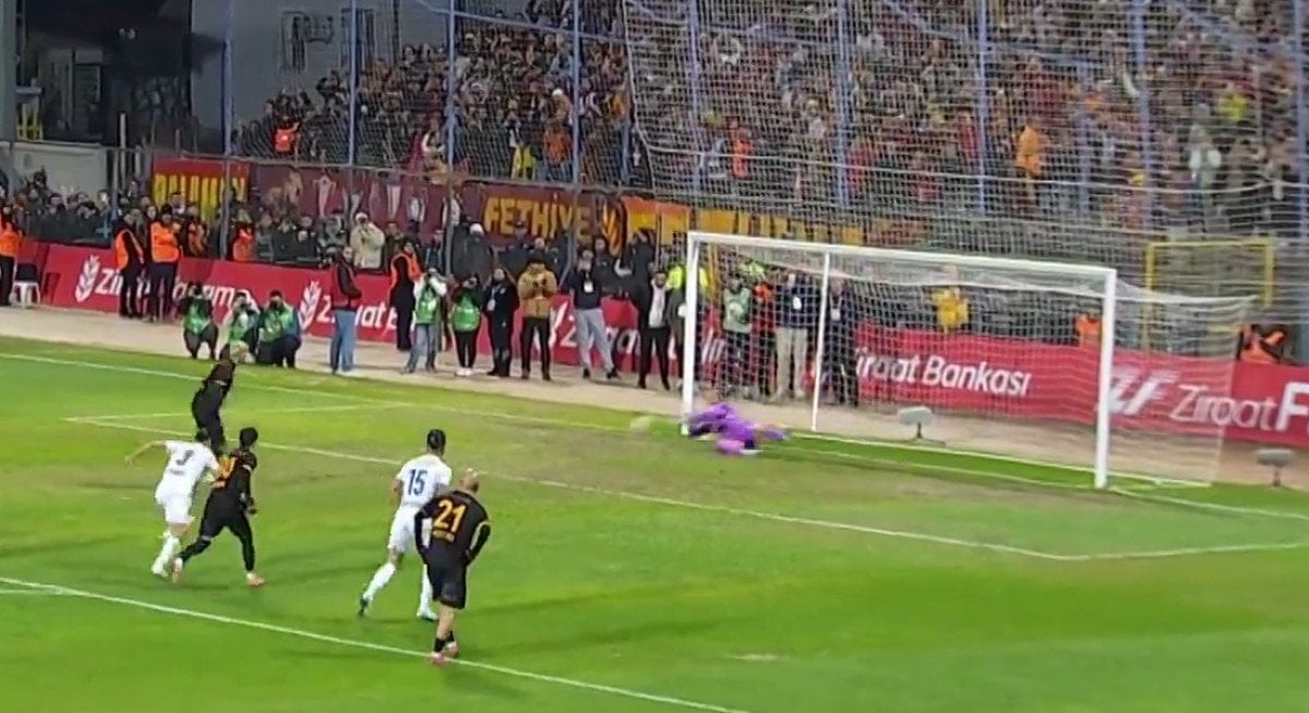Fethiye İlçe Stadyumu'nda oynanan mücadelenin ilk yarısında konuk takım sarı-kırmızılılar, iki kez penaltı vuruşundan faydalanamadı.