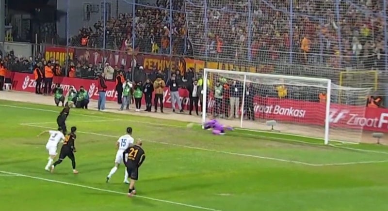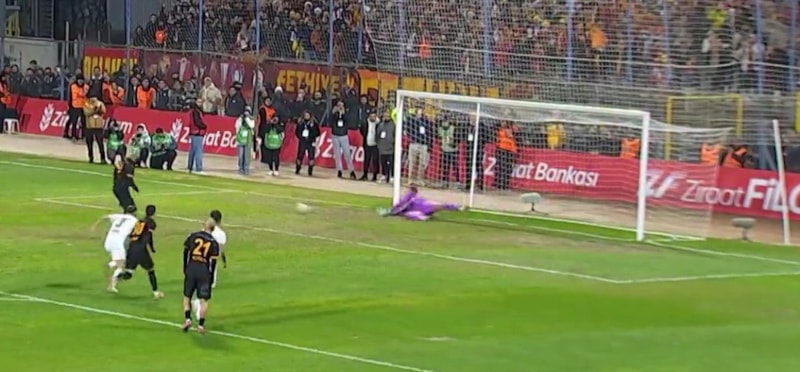 Penaltı, Fethiyesporlu oyuncuların ceza sahasına erken girmesi nedeniyle VAR uyarısıyla tekrar ettirildi.