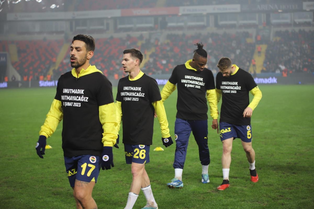 Bu sırada Gaziantep FK ve Fenerbahçe futbolcuları ile tribünlerdeki tüm taraftarlar depremde hayatını kaybedenleri alkışlarla andı. Tribünlerden sahaya atılan karanfiller ise duygusal anlar yaşanmasına neden oldu.