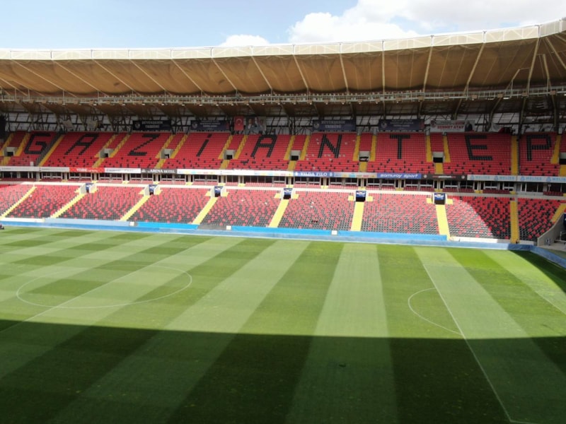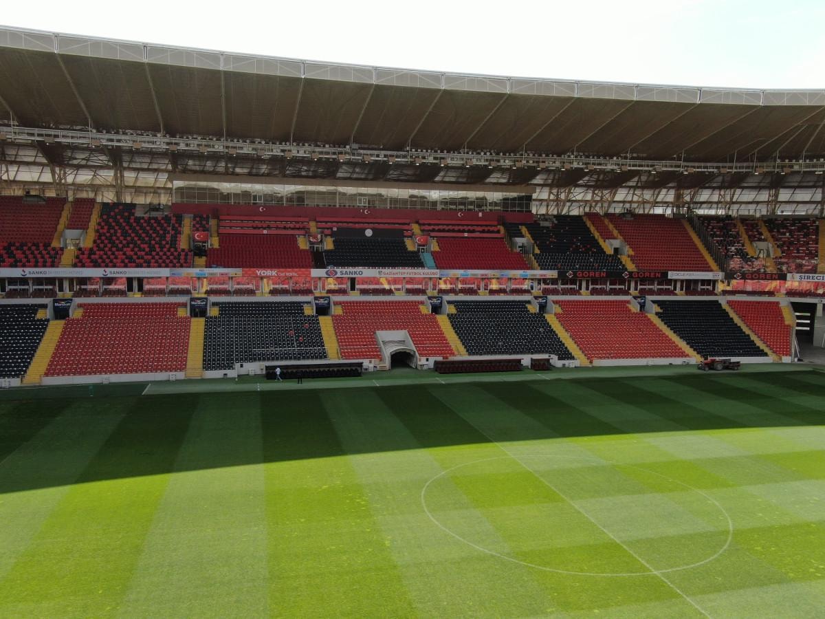 14 Mayıs Çarşamba günü saat 20.45'te başlayacak finali öncesi baklava desenli dış görünümüyle dikkat çeken 35 bin 574 kişilik Gaziantep Stadyumu'ndaki hummalı çalışmalar aralıksız devam ediyor.