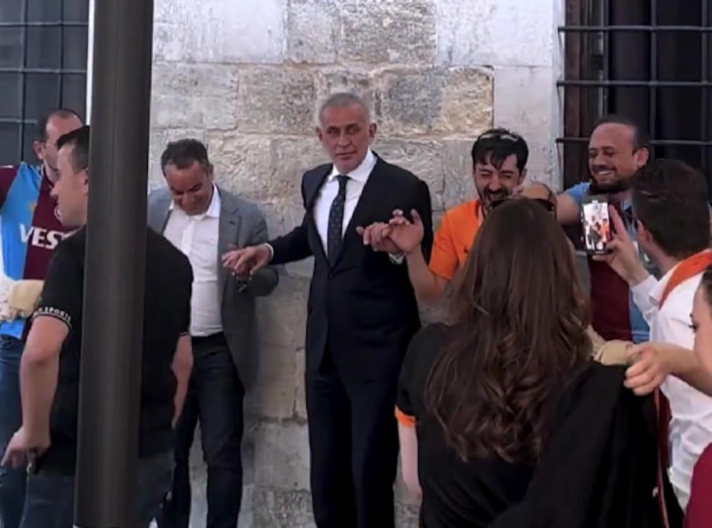 TFF Başkanı İbrahim Hacıosmanoğlu, Türkiye Kupası finali öncesi taraftarlarla birlikte horon çekti.