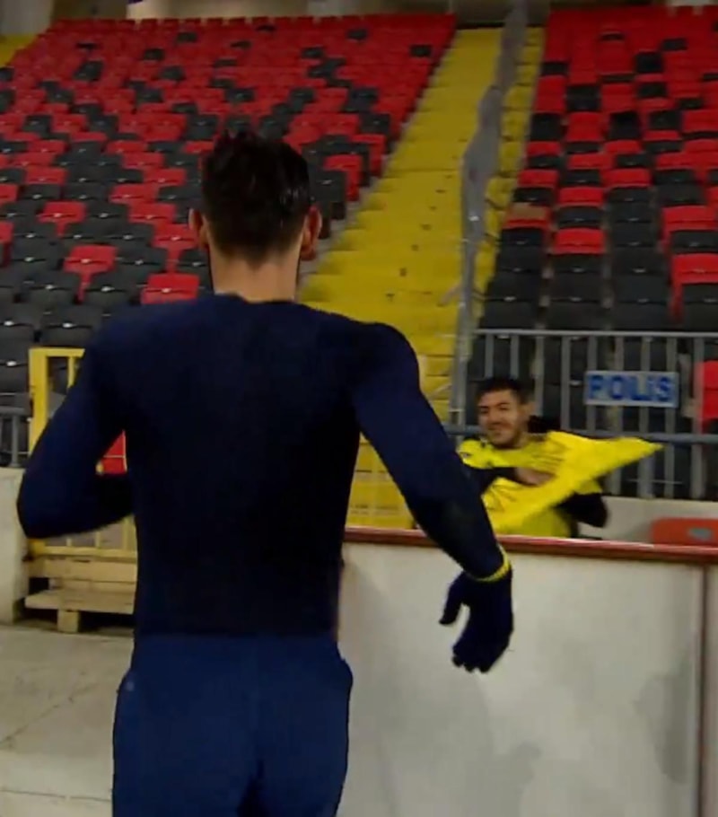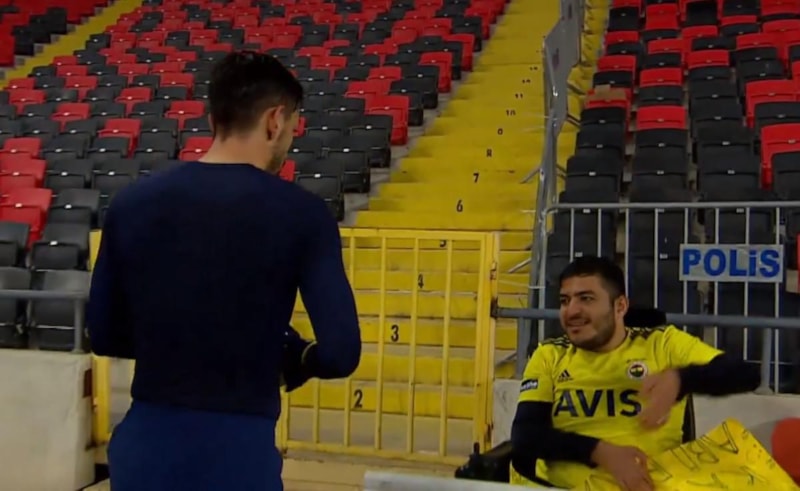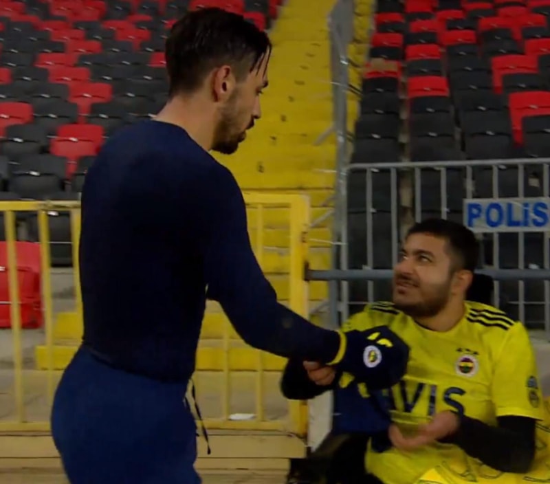 Fenerbahçe'nin Gaziantep FK'yı 2-0 yenerek Türkiye Kupası'nda çeyrek finale yükseldiği karşılaşmanın ardından sarı-lacivertlilerin milli oyuncusu İrfan Can Kahveci, engelli bir taraftara maç formasını verdi.