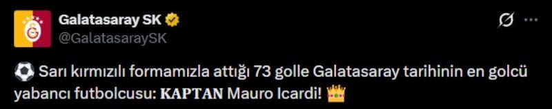 Galatasaray'ın Arjantinli yıldızı Mauro Icardi, sarı-kırmızılı kulübün tarihindeki en golcü yabancı futbolcu oldu.