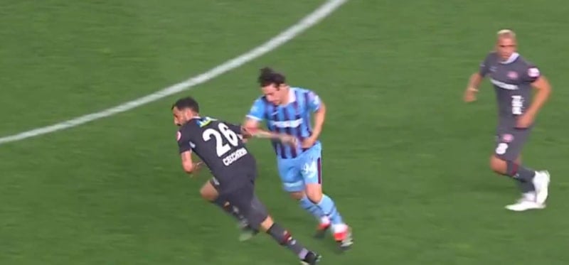 Karadeniz ekibinin genç oyuncusu Enis Destan, Federico Ceccherini ile girdiği ikili mücadele sırasında rakibine sert bir müdahalede bulundu.