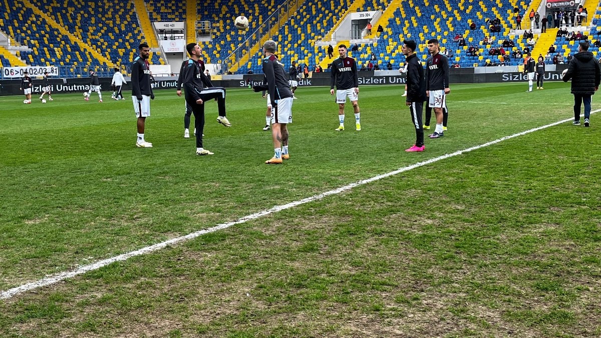 Ankara Eryaman Stadyumu'nda oynanan bu kritik müsabaka öncesinde ise konuk takım Trabzonspor'dan sahanın zeminine isyan geldi.