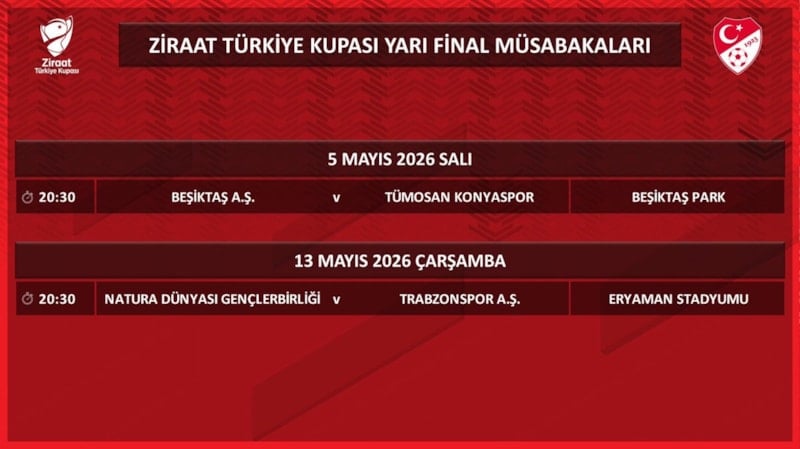 Türkiye Kupası'nda yarı final maç programı şu şekilde: