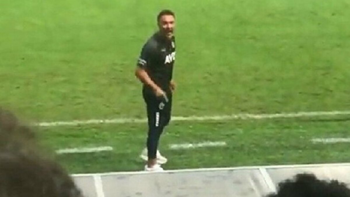 Tecrübeli çalıştırıcı, kendisine taktik tavsiyesinde bulunan taraftara susmasını işaret ederken 'işime karışma ve kapa çeneni' diyerek uyarılarda bulundu.
