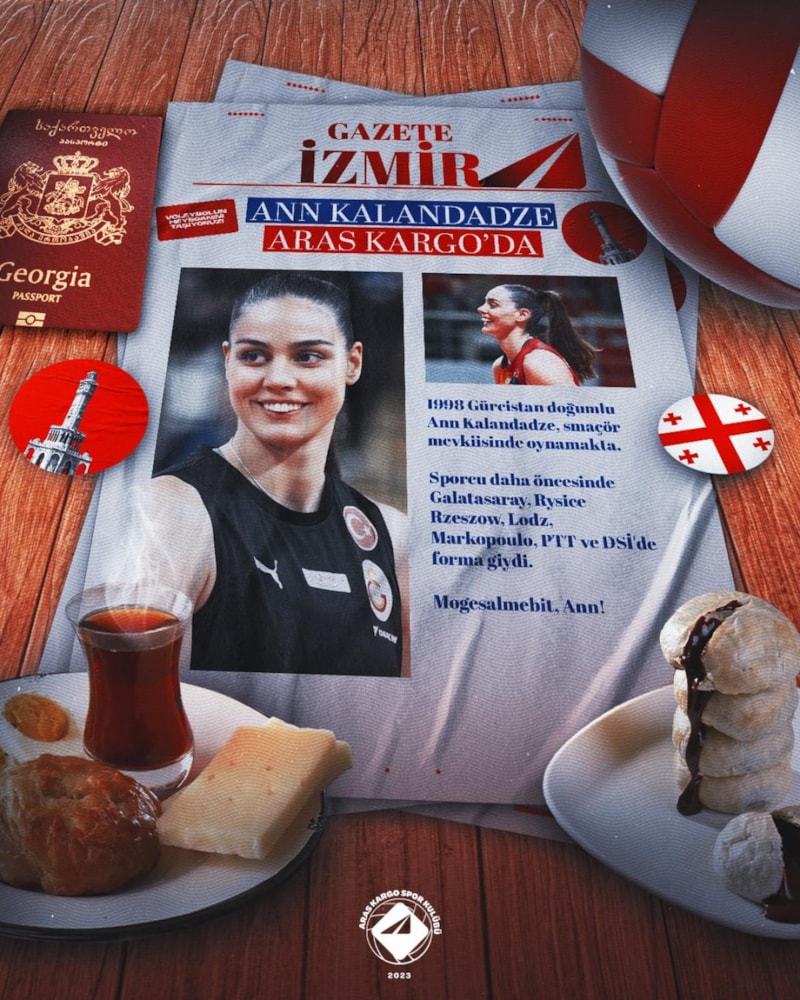Ann Kalandadze, Aras Kargo'da. 1998 Gürcistan doğumlu Kalandadze, smaçör mevkisinde oynamakta. Sporcu daha öncesinde Galatasaray, Rysici Rzessow, Lodz, Markopoulo, PTT ve DSİ'de forma giydi.