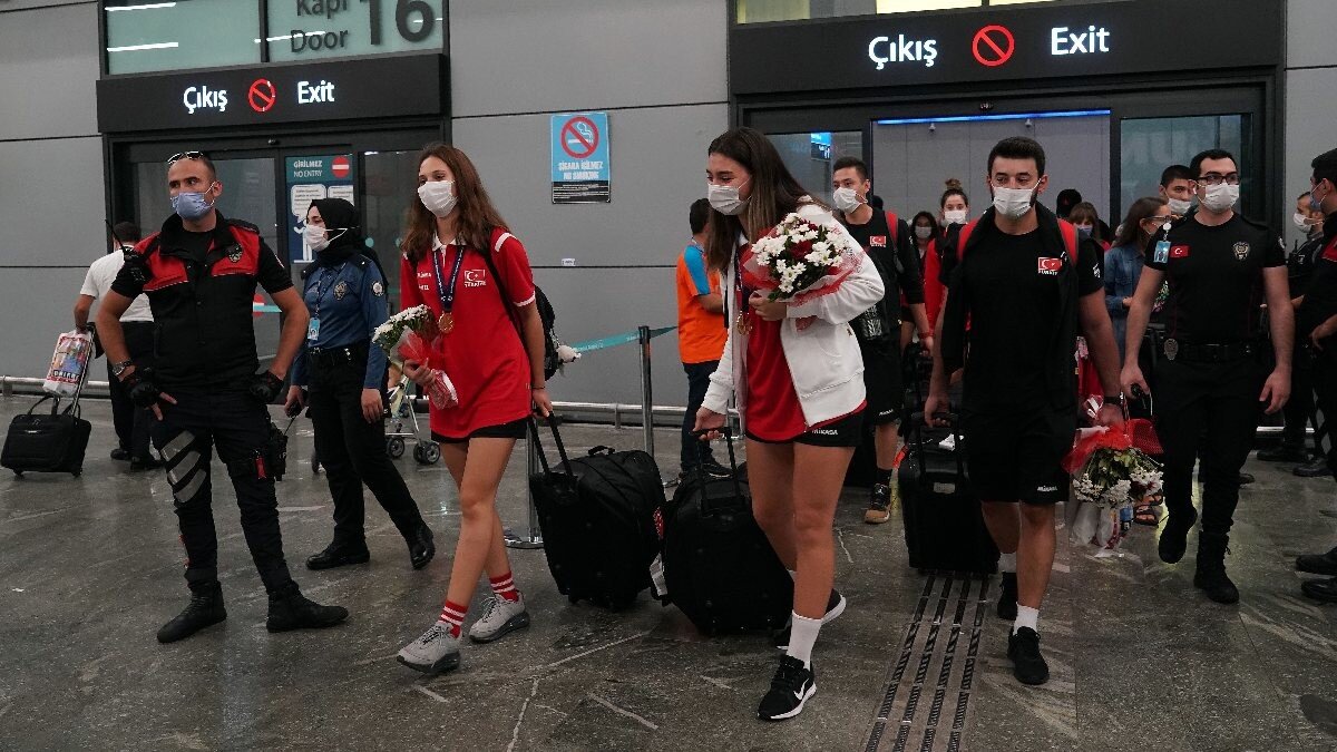 Gece geç saatlerde İstanbul Havalimanı'na gelen millileri, çok sayıda basın mensubu ve Türkiye Voleybol Federasyonu yetkilileri karşıladı.