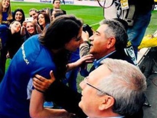 Bu sırada voleybolcuları tebrik etmek için saha kenarına gelen Fenerbahçe Başkanı Aziz Yıldırım ile Kim Yeon Koung arasında esprili bir diyalog yaşandı.