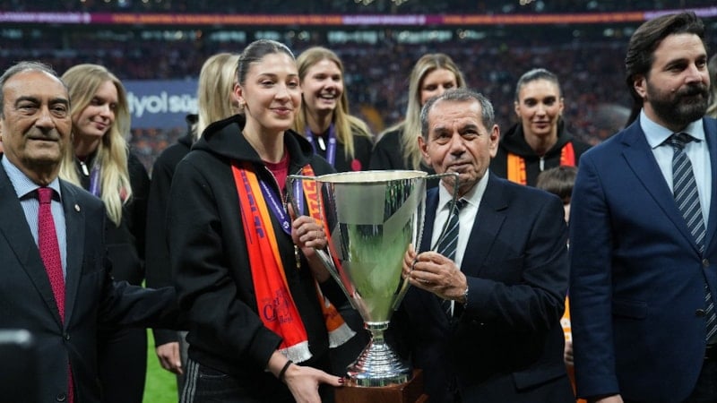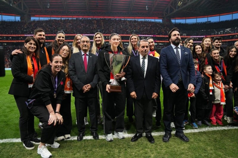 CEV Kupası şampiyonu Galatasaray Kadın Voleybol Takımı oyuncuları ve teknik ekibi, müsabaka öncesinde taraftarın karşısına çıktı.