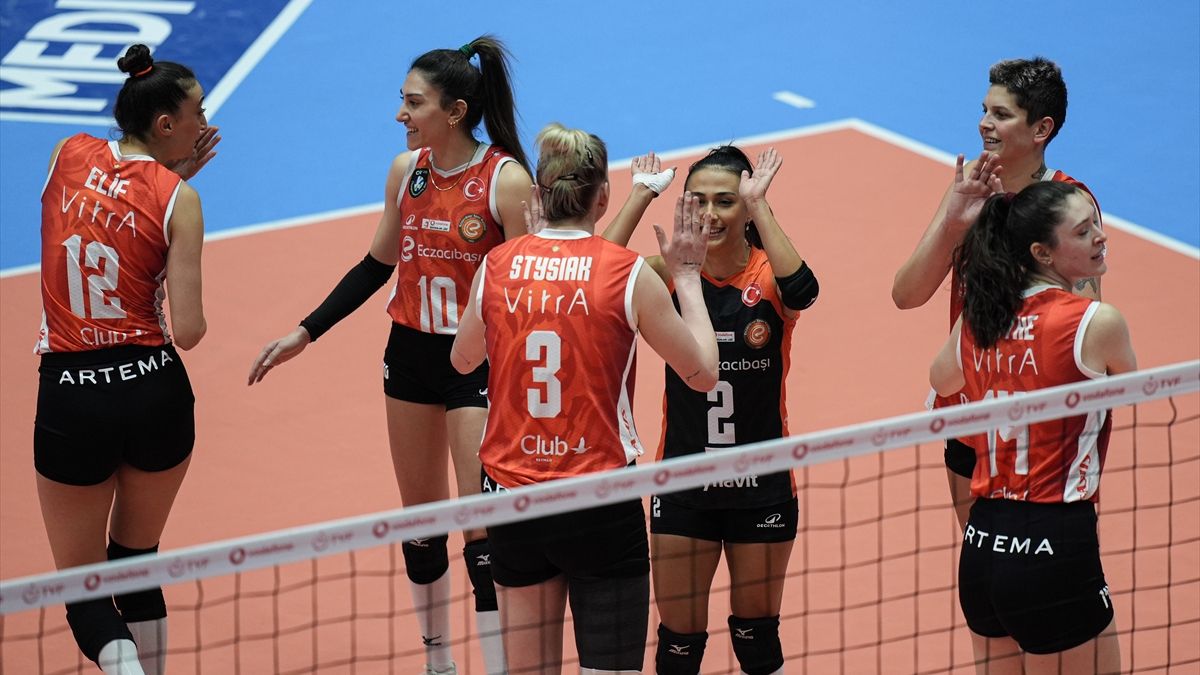 Eczacıbaşı: Ebrar Karakurt, Rettke, Stysiak, Yaprak Erkek, Jack Kısal, Elif Şahin (Simge Aköz, Meliha Diken, Nicoletti, Boden)