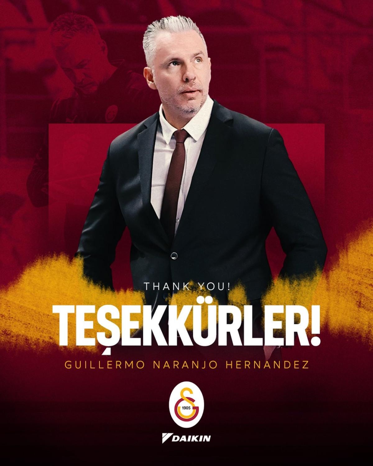 Kulübümüz, Galatasaray Daikin Başantrenörü Guillermo Naranjo Hernandez ile her iki tarafın da çıkarları göz önünde bulundurularak yollarını ayırma konusunda karşılıklı ve dostane şekilde anlaşmaya varmıştır.