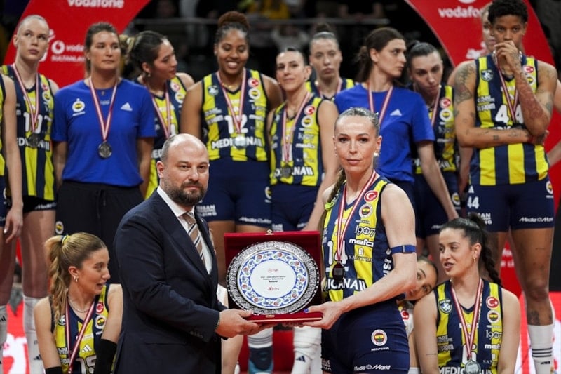 Gençlik ve Spor Bakanı Osman Aşkın Bak ile Türkiye Voleybol Federasyonu Başkanı Mehmet Akif Üstündağ, kupayı sarı-siyahlı takımın kaptanı Zehra Güneş'e takdim etti.