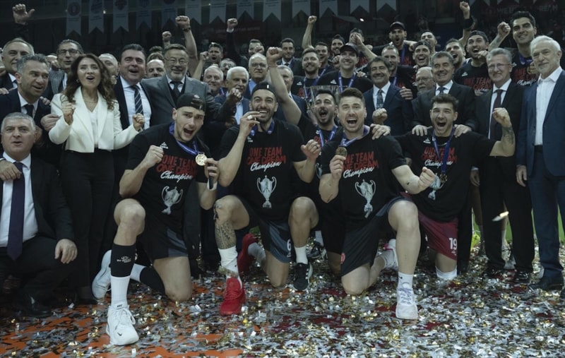 Ziraat Bankkart oyuncuları, törende "tek takım, tek rüya: şampiyon" yazan tişörtler giydi.
