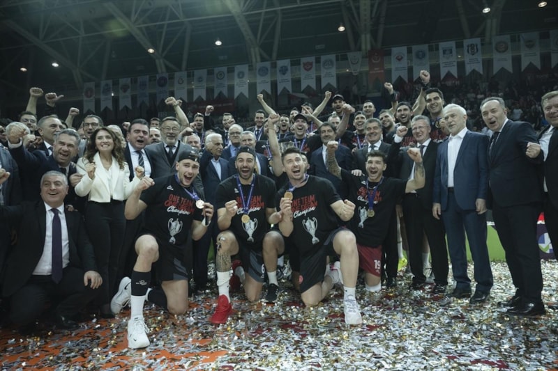 Ziraat Bankkart oyuncuları ve teknik ekibi büyük coşku yaşadı. Oyuncular, kupayla taraftarları selamladı.