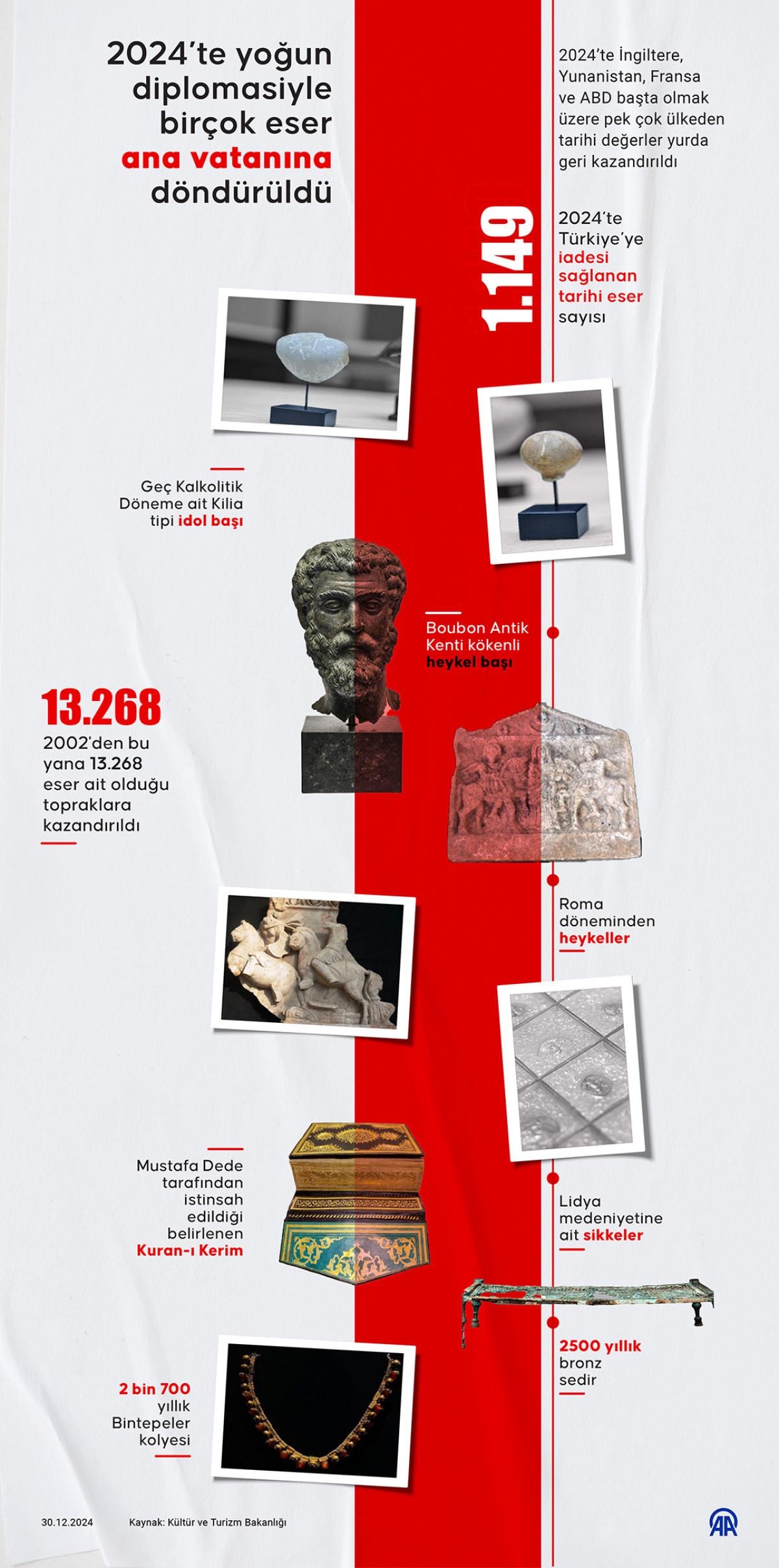 2024’te İngiltere, Yunanistan, Fransa ve ABD başta olmak üzere pek çok ülkeden tarihi değerler yurda geri kazandırıldı.