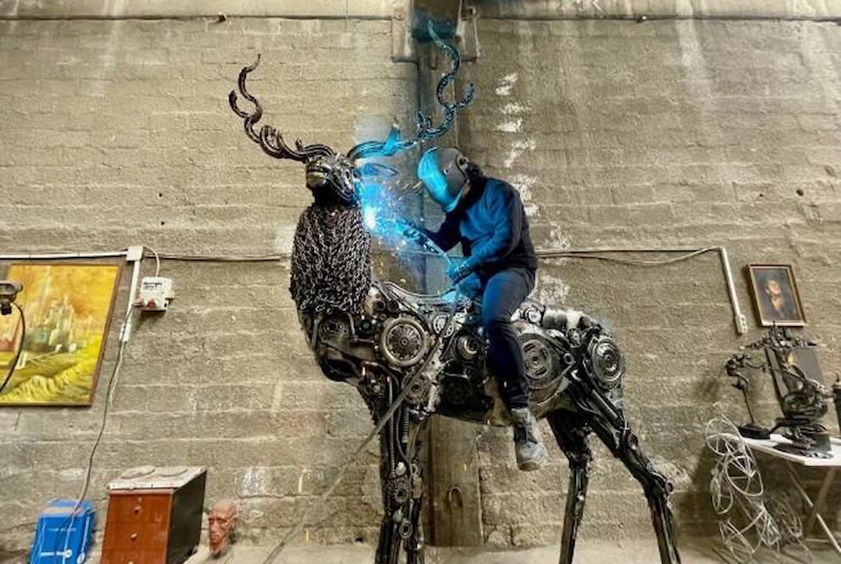 "Eserlerim sergilenip, farklı koleksiyonlarda yerini buldu. 2023 yılını da farklı bir eserle başlamak istedim. Bunun için de geyik figürünü seçtim. 3 metre yüksekliği, 2 metre 84 santimetre enine sahip. Geyik heykelimin ağırlığı 500 kilogramı buldu. Yaklaşık 3 bin geri dönüşüm metal malzemeyle ürettim. Otomobil, mutfak, dikiş makinesi parçalarını kullandım. İnsanların çöp ya da atık malzeme olarak gördüğü ömrünü bitirmiş parçalara geyik heykeliyle adeta ikinci hayatlarını verdim. Heykele Hitit kültüründeki geyik tanrısı Haruva'nın adını koydum."