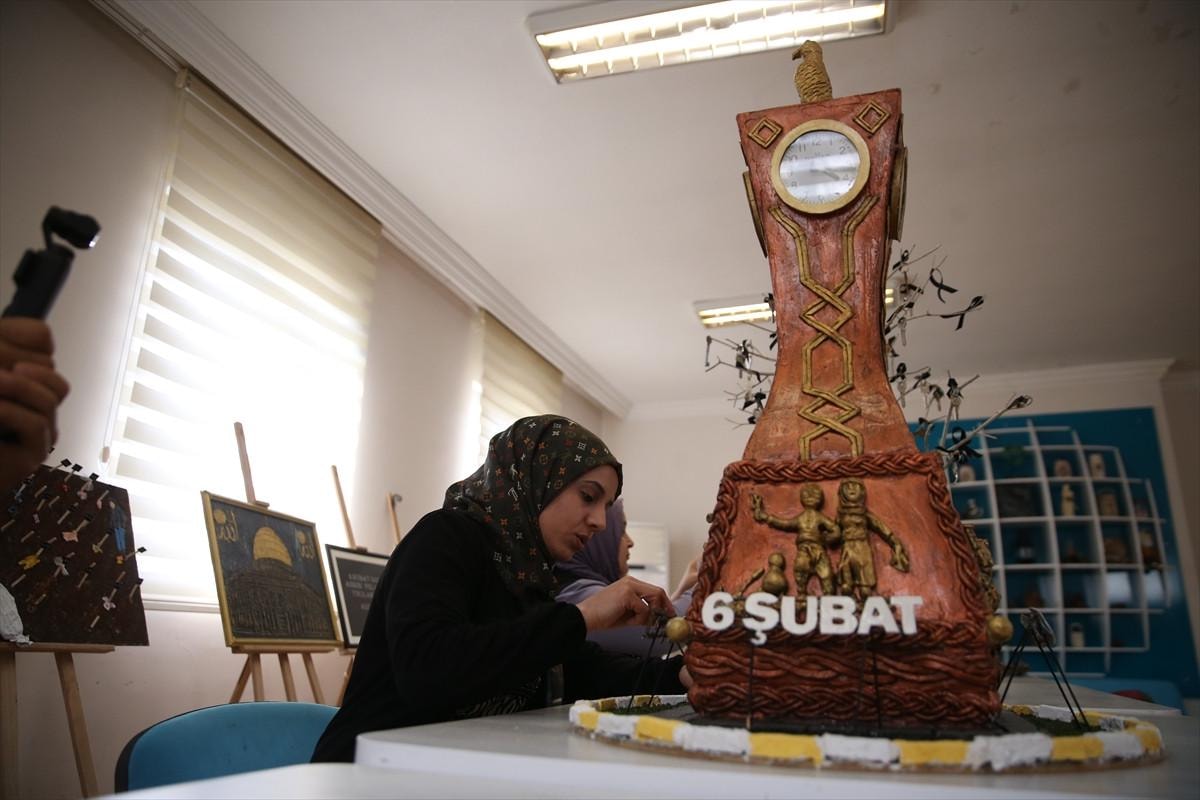 Kursiyerler, 46 yıl önce inşa edilen ve "Asrın Felaketi" olarak anılan Kahramanmaraş merkezli depremlerde saat 04.17'de durarak şehrin simgesi haline gelen saat kulesinin maketini atık malzemeler kullanarak üretiyor. El emeğiyle hazırlanan bu minyatürler, çeşitli kurum ve kuruluşlara gönderiliyor ve kente gelen misafirlere hediye ediliyor.
